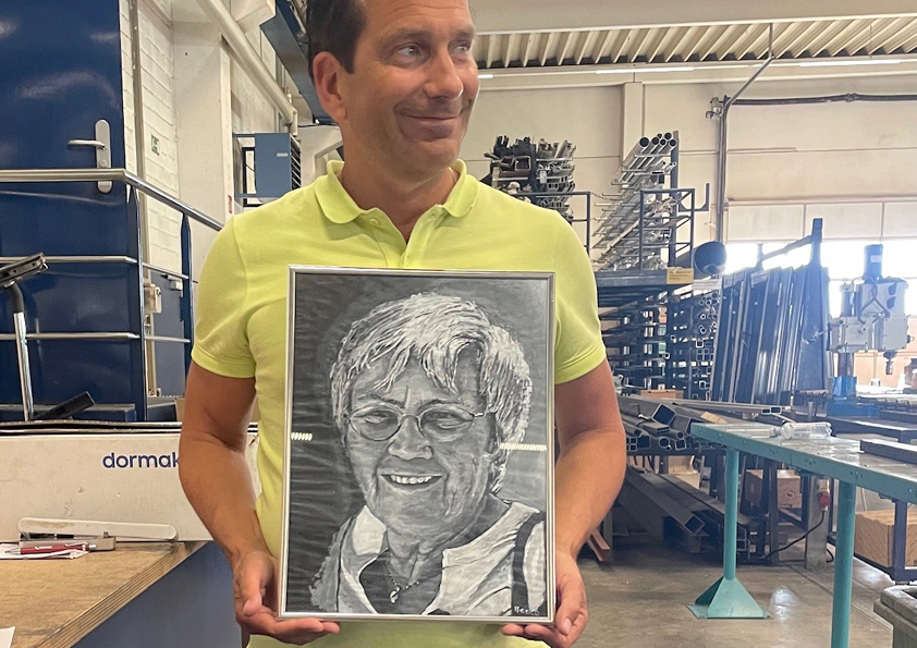 Da ist es auch kein Wunder, wenn das Team anerkennend tolle Überraschungen vorbereitet. Die Firma wurde zum Ehrentag mit 80 Sonnenblumen in ein Blumenmeer verwandelt, es gab liebevoll selbstgemachte Geschenke wie leckere Torten und ein großartiges Portrait von Bärbel.